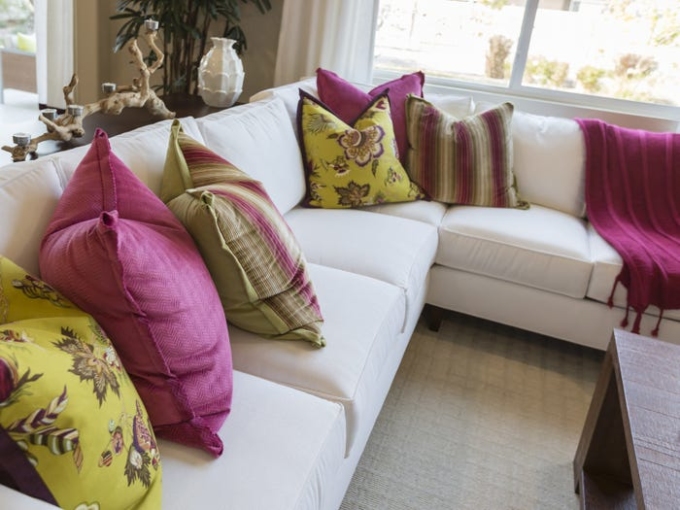 Theo Joyner, một cách dễ dàng để thay đổi thiết kế phòng khách là thay gối phù hợp với sofa. "Kết hợp vải nhung và vải lanh (linen), hay lụa với họa tiết động thực vật hay kẻ, thêu để mang cho sofa sự mới mẻ", Joyner nói.